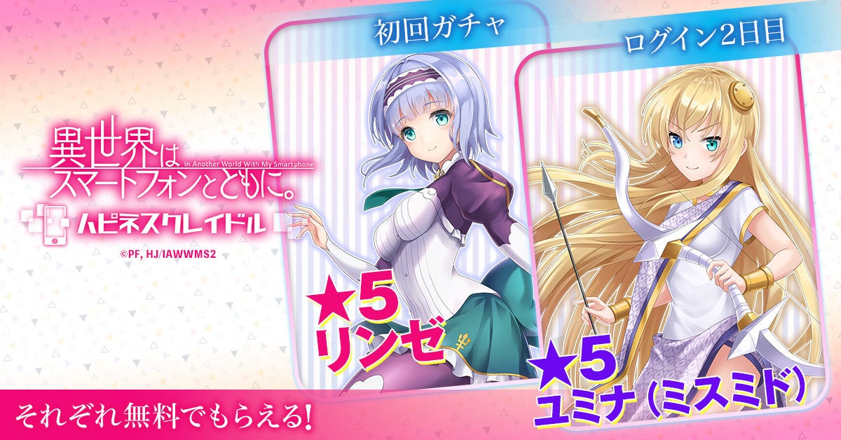 2.初回高級召喚で☆5リンゼ確定!更にログインボーナスで2日目に☆5ユミナ(ミスミド)もらえる!