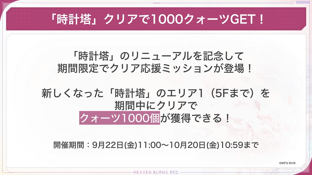 ■ 「時計塔」クリアでクォーツ1,000個をGET!
