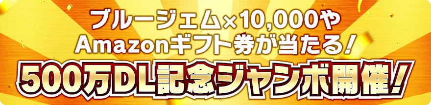 ブルージェム×1万個やAmazonギフト券獲得のチャンス!500万DL記念ジャンボ開催!