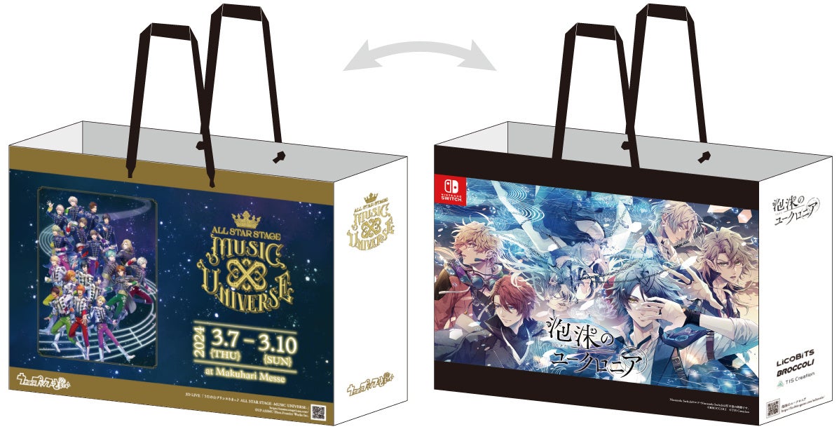 11月3日(金・祝)は《にじさんじ》、11月4日(土)には《3D LIVE「うたの☆プリンスさまっ♪ ALL STAR STAGE -MUSIC UNIVERSE-」》/《泡沫のユークロニア》の絵柄のオリジナルショッパーを配布いたします。