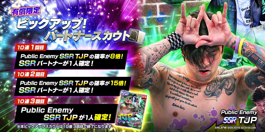 ●新規SSRパートナーが登場!SSR「[Public Enemy]TJP」をピックアップしたパートナースカウトを開催!
