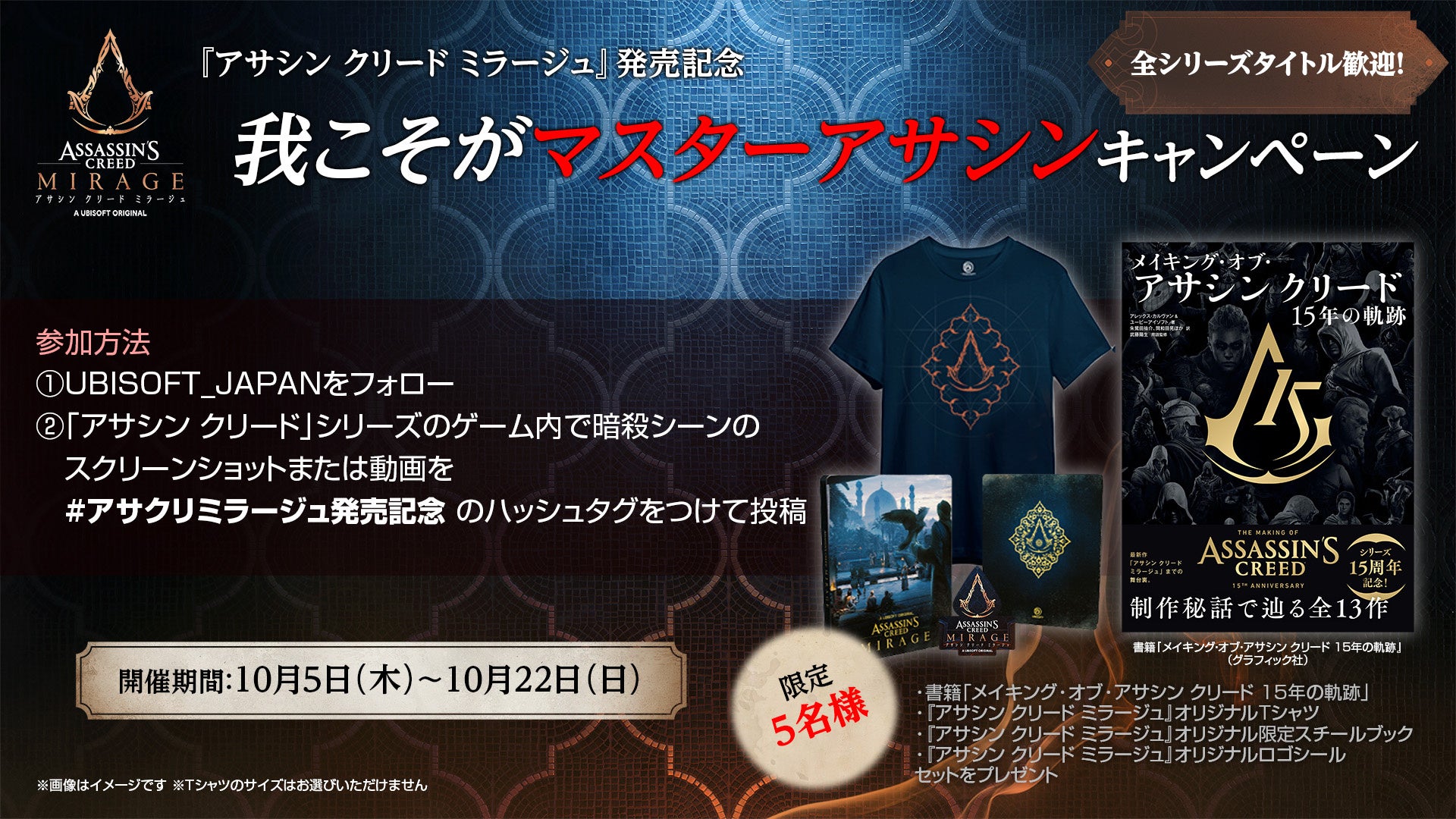 さらに本作の発売を記念し、「我こそがマスターアサシン」キャンペーンを開催いたします。投稿内容は本作に限らず、シリーズ全作品が対象!参加された方から限定5名様に豪華グッズをプレゼントいたします。ぜひご参加ください!