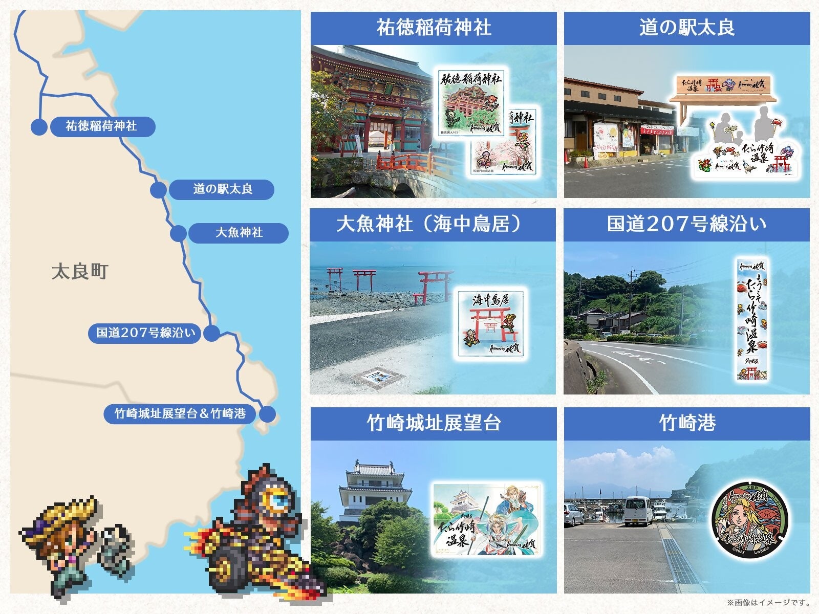 たら竹崎温泉の9つの旅館に宿泊して、「#ロマ佐賀」をつけてSNS投稿をした方にSaGa風呂セット(SaGa風呂タオル、SaGa風呂 たら竹崎温泉「カニだー!」絵馬、アメニティ袋)をプレゼント。さらに各旅館にはウェルカムパネルを設置予定です。