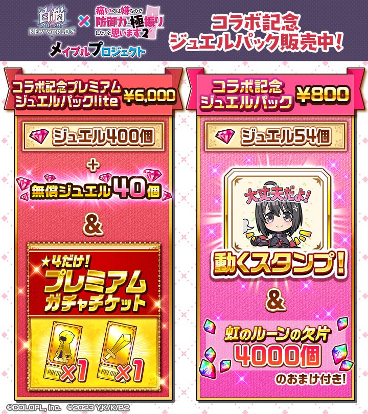 コロプラ<3668>は、『白猫プロジェクト NEW WORLD'S(以下、『白猫』)』において、3大キャラコラボ第2弾として『痛いのは嫌なので防御力に極振りしたいと思います。2』とのコラボイベントと開始した。