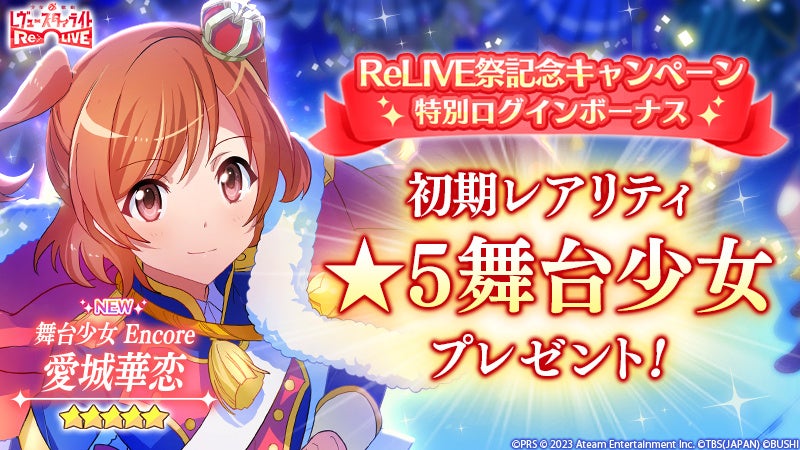 ゲームアプリ『少女☆歌劇 レヴュースタァライト -Re LIVE-(スタリラ)』の5周年をお祝いする「Re LIVE祭キャンペーン」を開催します。