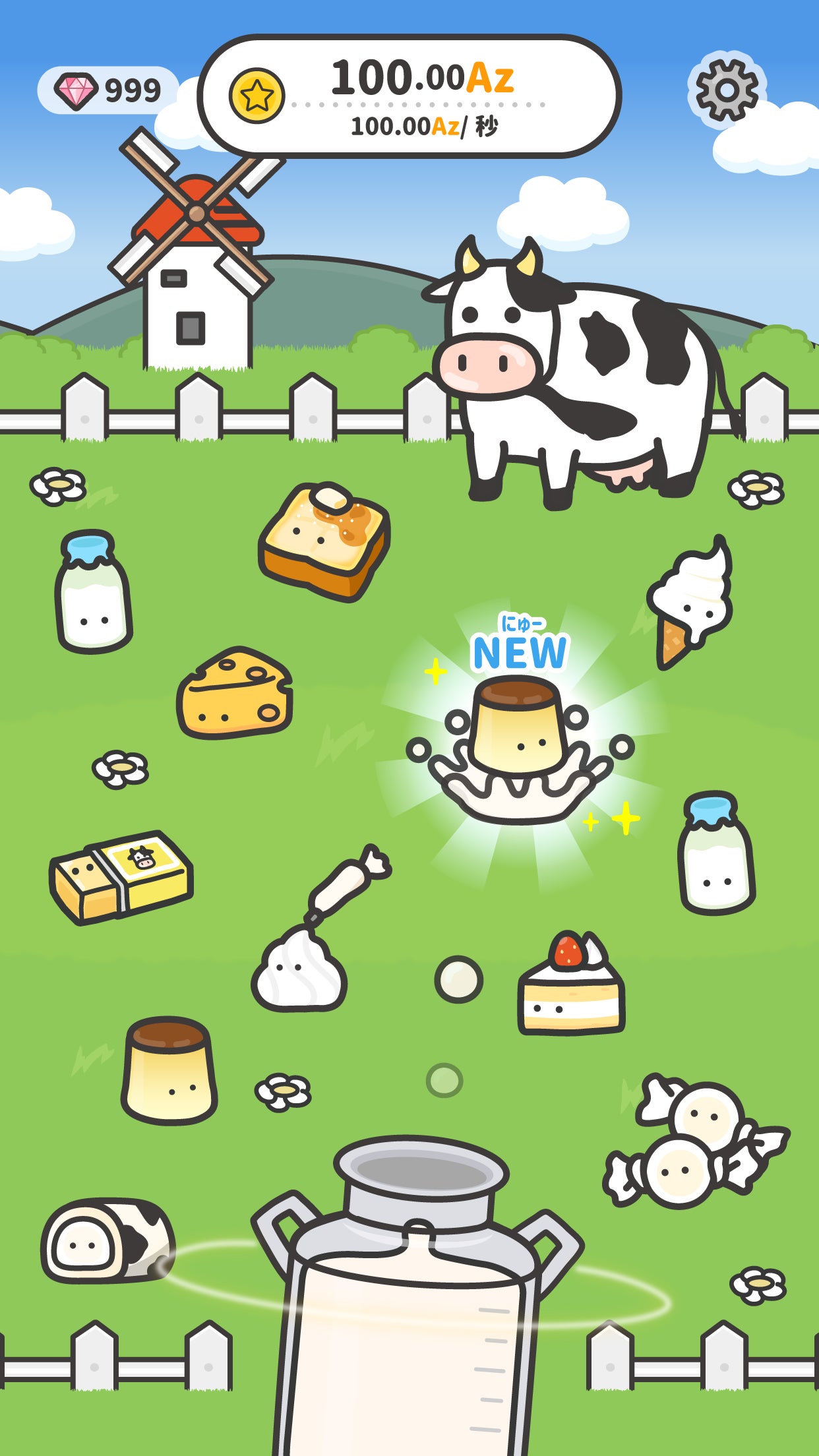 1.みるくタンクをタップして「にゅー製品」を牧場に置こう!