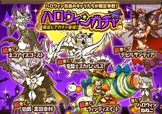 ポノスは「にゃんこ大戦争」で、10月16日(月)11時より期間限定イベント「ハロウィンパーティ」を開催し、イベント限定レアガチャに新キャラクターを追加した。