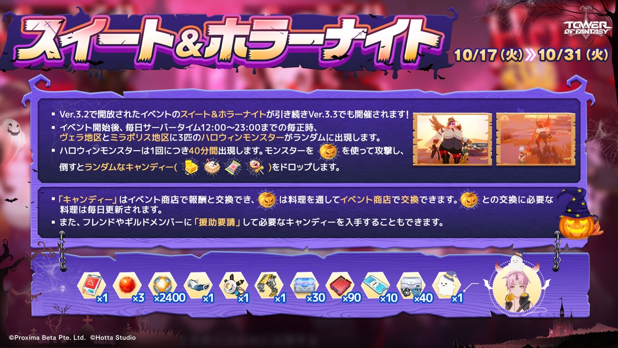 この特別なハロウィンモンスターには、「いたずらカボチャ」というイベント専用アイテム(イベント商店で特定の「料理」と交換で入手可能)で攻撃できます。モンスターを倒すと、豪華報酬と交換できるイベント専用アイテム「キャンディー」がランダムでドロップします。
