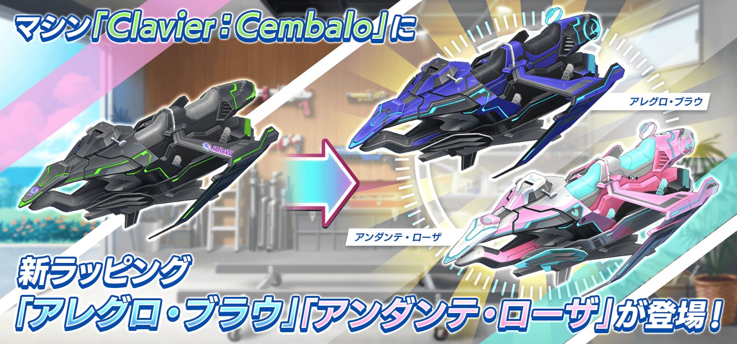 ボスバトルイベント「科学の力!ISRWからの挑戦」の開催を記念して、マシンラッピングが登場!マシンラッピング「アレグロ・ブラウ」と「アンダンテ・ローザ」は、マシン「Clavier:Cembalo」で使用できます!