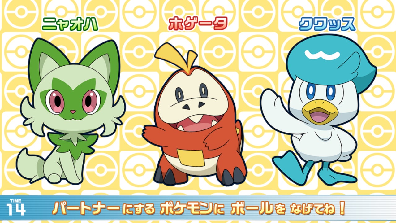 今回のアップデートでは、パルデア地方のポケモンたちが新たに加わり、ゲームスタート時に「ニャオハ」「ホゲータ」「クワッス」の3匹からパートナーとなるポケモンを選ぶことができるようになる。