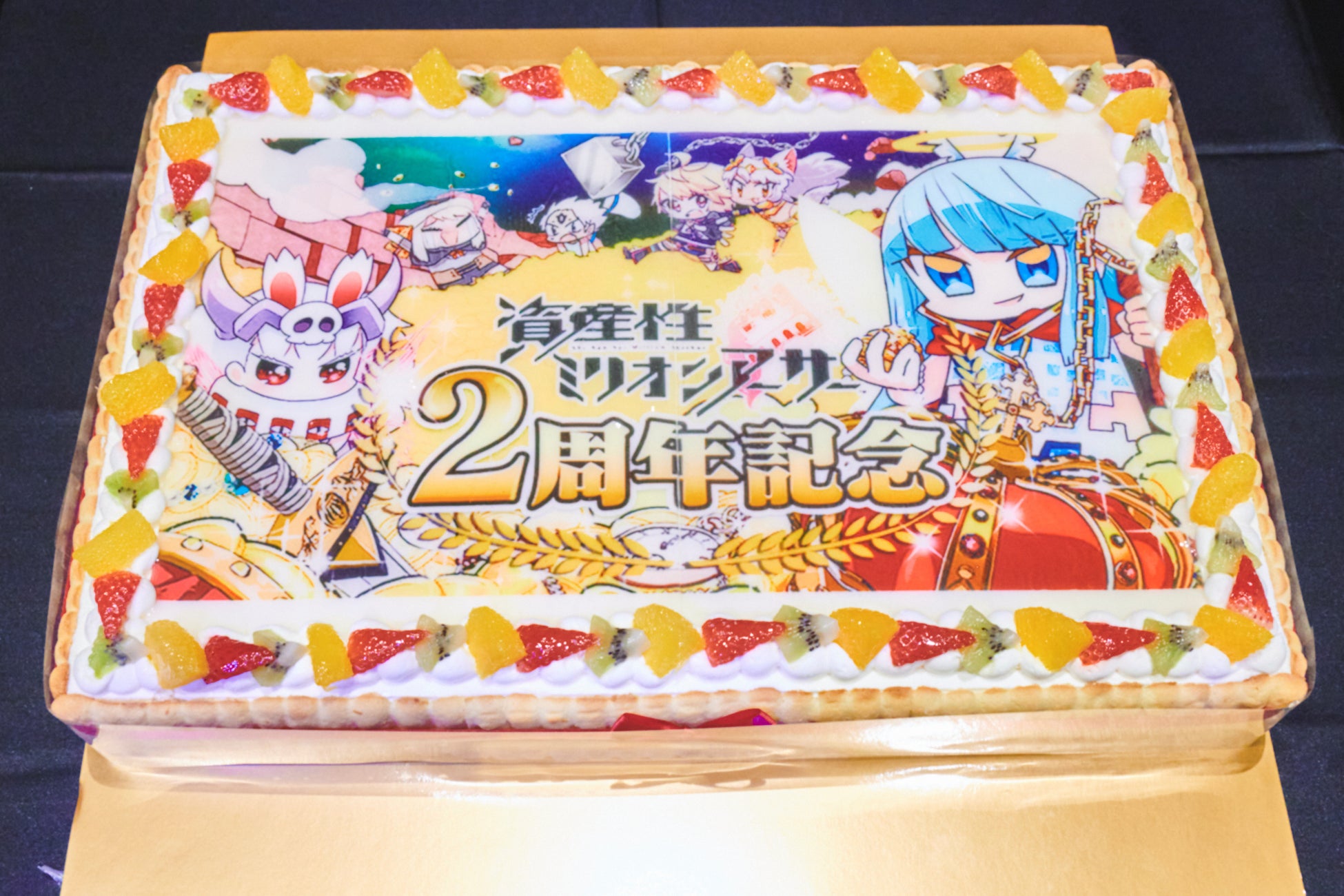 そして、2023年10月14日(土)に正式リリースから2周年を迎えた資産性ミリオンアーサーへオリジナルケーキを用意しお祝い。ホルダーから祝福の言葉も上がり、盛り上がりを見せた。