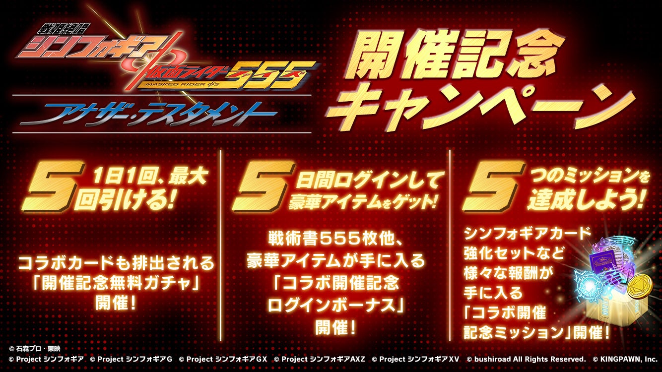 『仮面ライダー555』とのコラボ開催を記念して、「戦姫絶唱シンフォギア×仮面ライダー555 アナザー・テスタメント開催記念キャンペーン」を開催いたします。