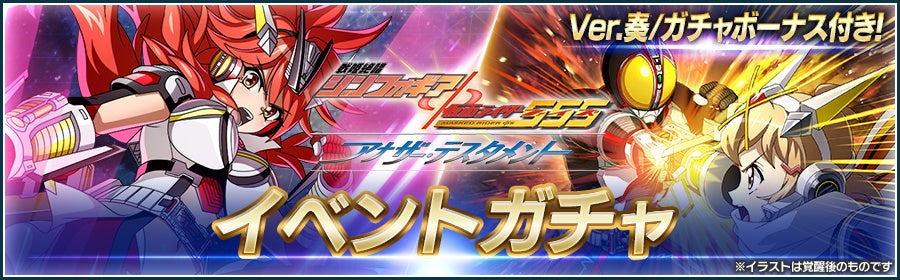 『戦姫絶唱シンフォギア×仮面ライダー555 アナザー・テスタメント』限定の新★6シンフォギアカードが登場する「戦姫絶唱シンフォギア×仮面ライダー555 アナザー・テスタメントイベントガチャ Ver.奏」を開催いたします。