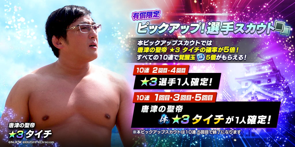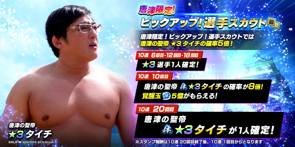 ●新日SS×唐津コラボ!★3タイチが唐津限定ピックアップ選手スカウトにて登場!