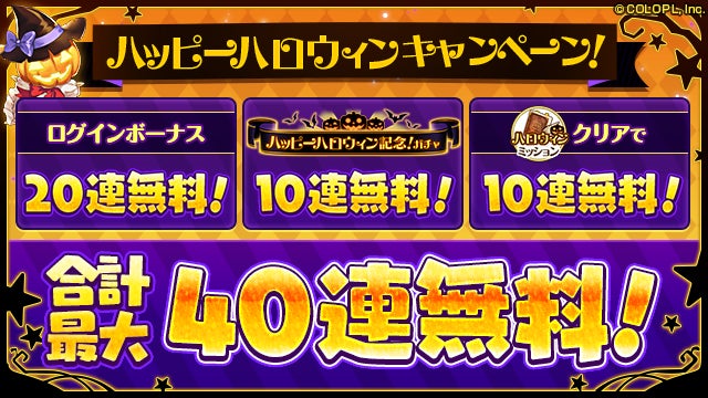 対象期間中、ログイン5日目と10日目に「ハッピーハロウィン記念!ガチャ」を追加で10連ずつ合計20連引くことが出来る。
