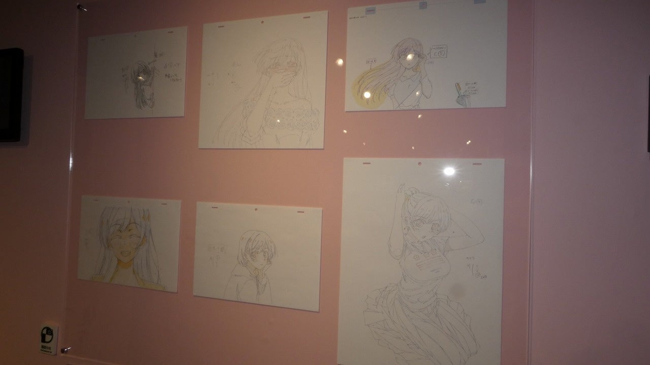 続いてのエリアでは、アニメ制作における貴重な原画の数々をヒロインごとに展示。ヒロインたちの喜怒哀楽の表情を、原画と実際のアニメカットの両方で楽しめます。秋をイメージしたフォトスポットも用意されているので、ファンの人はこちらも注目したいところ。
