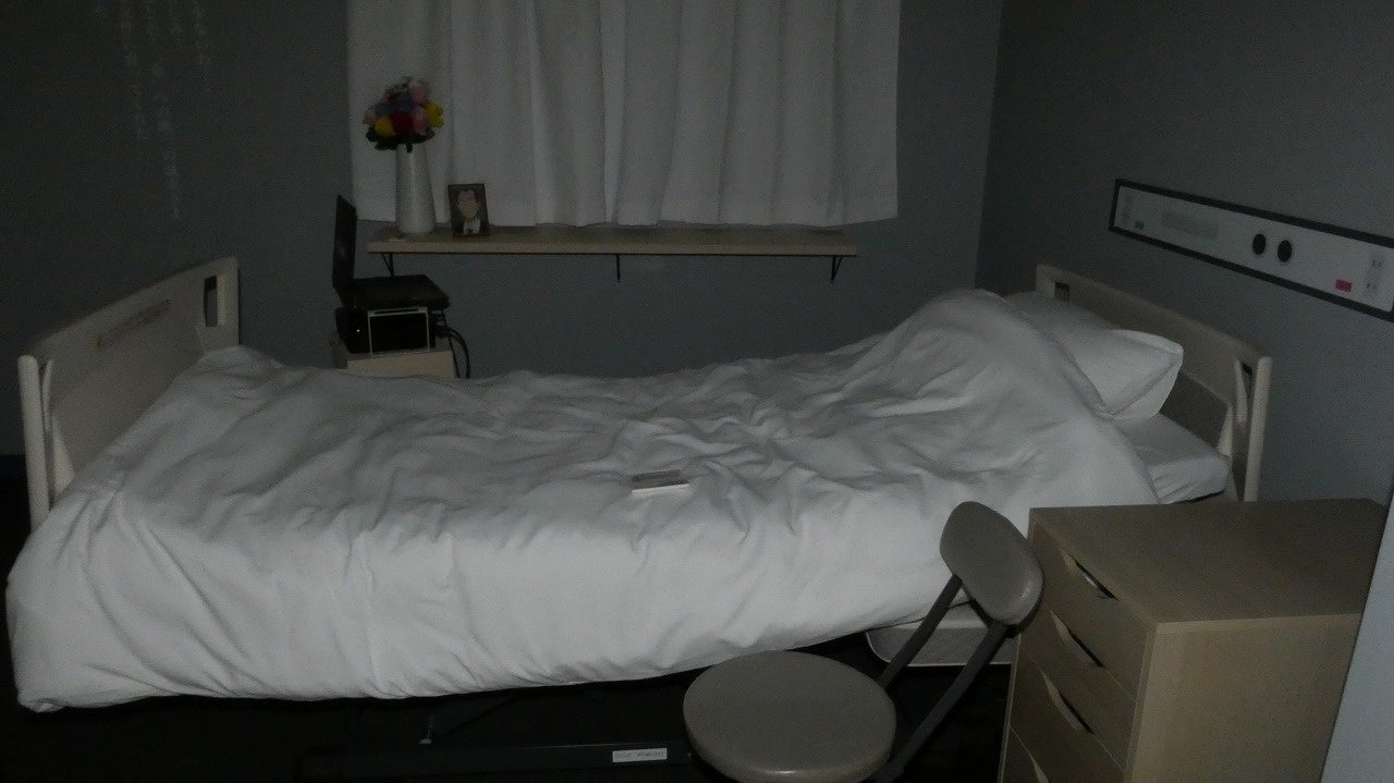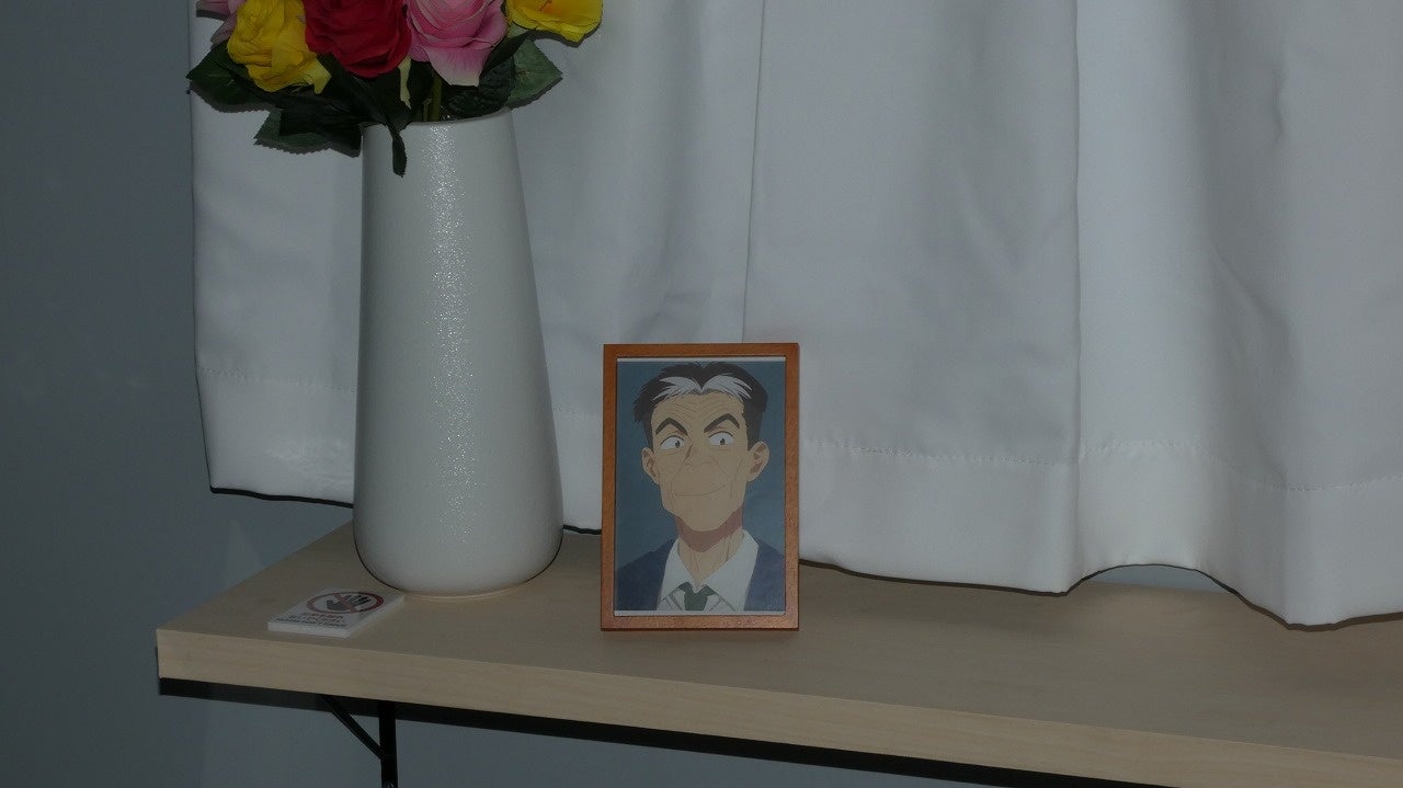 企画展のラストでは、アニメ3期で放送された祖母・小百合と千鶴のシーンを再現したエリアが登場。病室の内装を会場で再現しただけでなく、アニメの映像を上映しており、印象深い病室での名シーンを振り返ることができます。