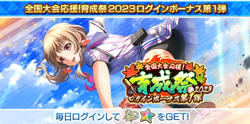 育成にお得な全国大会応援!育成祭2023ログインボーナス第1弾開催中
