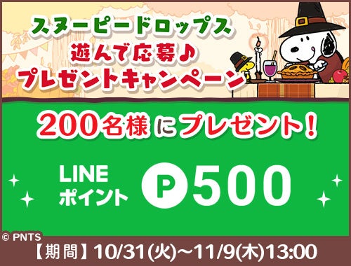 カプコン<9697>は、パズルゲームアプリ『スヌーピードロップス』にて、貴重なスヌーピーグッズが当たる秋のキャンペーンを開催している。