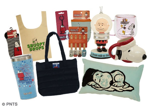 「スヌーピードロップス オリジナルマルシェバッグ」「クッション」「キッチングッズ」「マグカップ」など魅力的なグッズがたくさん!