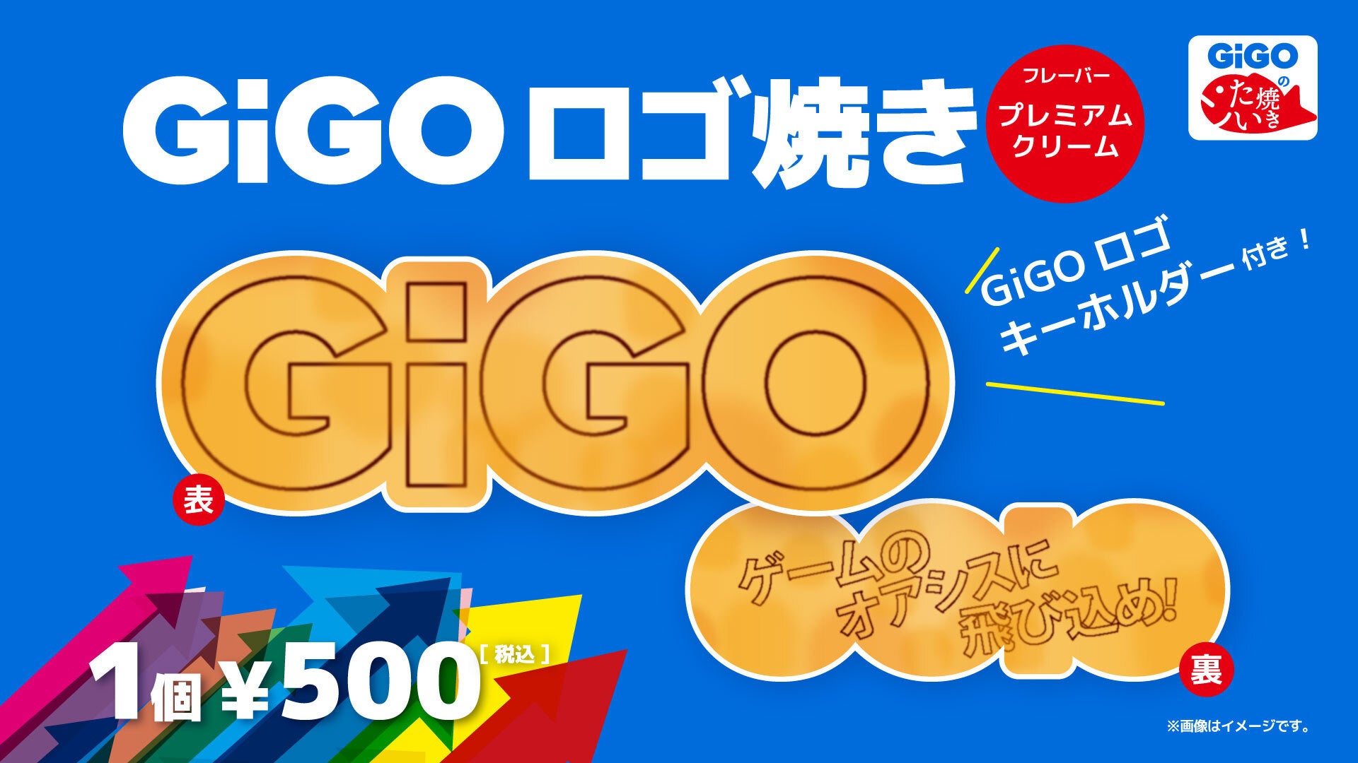 出展ブースでは、冷たいたい焼き「冷やしGiGOロゴ焼き」を販売いたします。(「GiGOアクリルストラップ」付 価格:500円(税込))どうぞこの機会にお試しください。