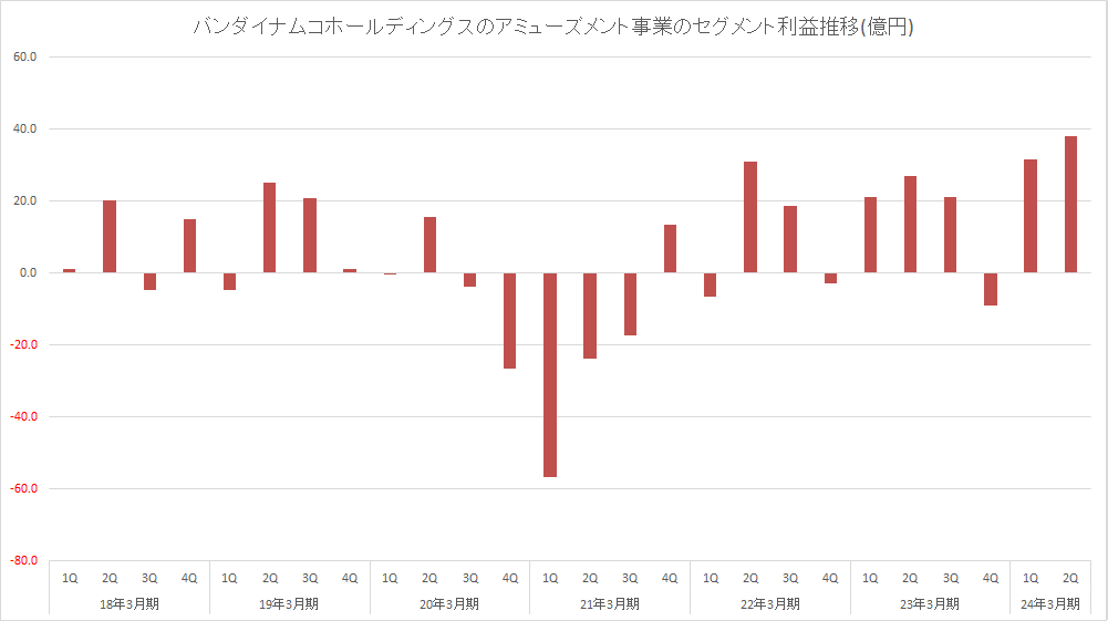 バンダイナムコホールディングス<7832>は、9月中間決算でアミューズメント事業の業績について、売上高が前年同期比21.8%増の592億5300万円、営業利益が同45.2%増の69億7700万円と大幅増益となったことを明らかにした。
