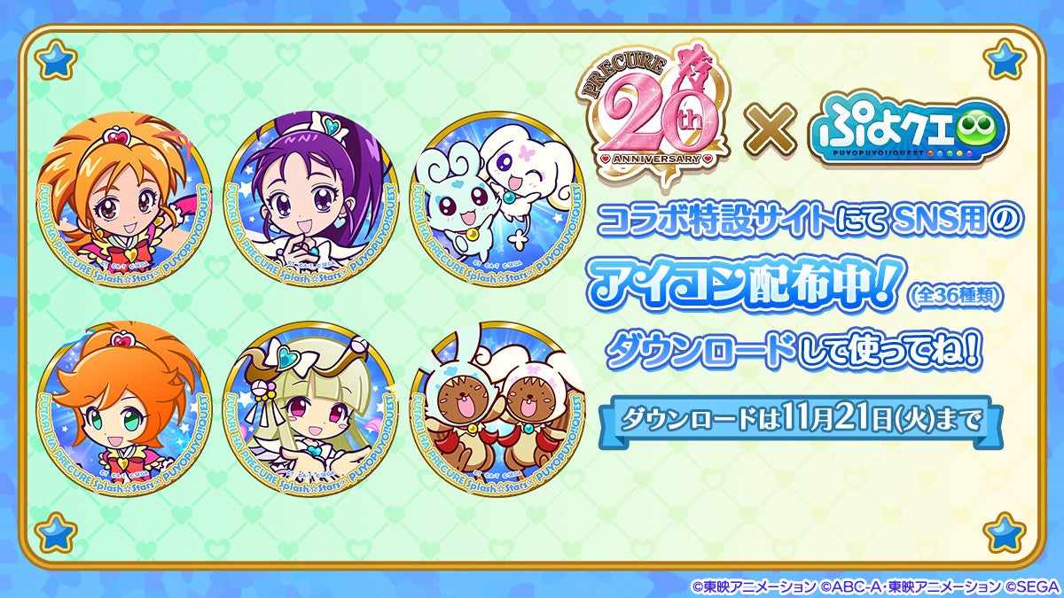 ◆『プリキュア』シリーズ×『ぷよぷよ!!クエスト』コラボ記念特設サイトにてSNS用アイコン配布中