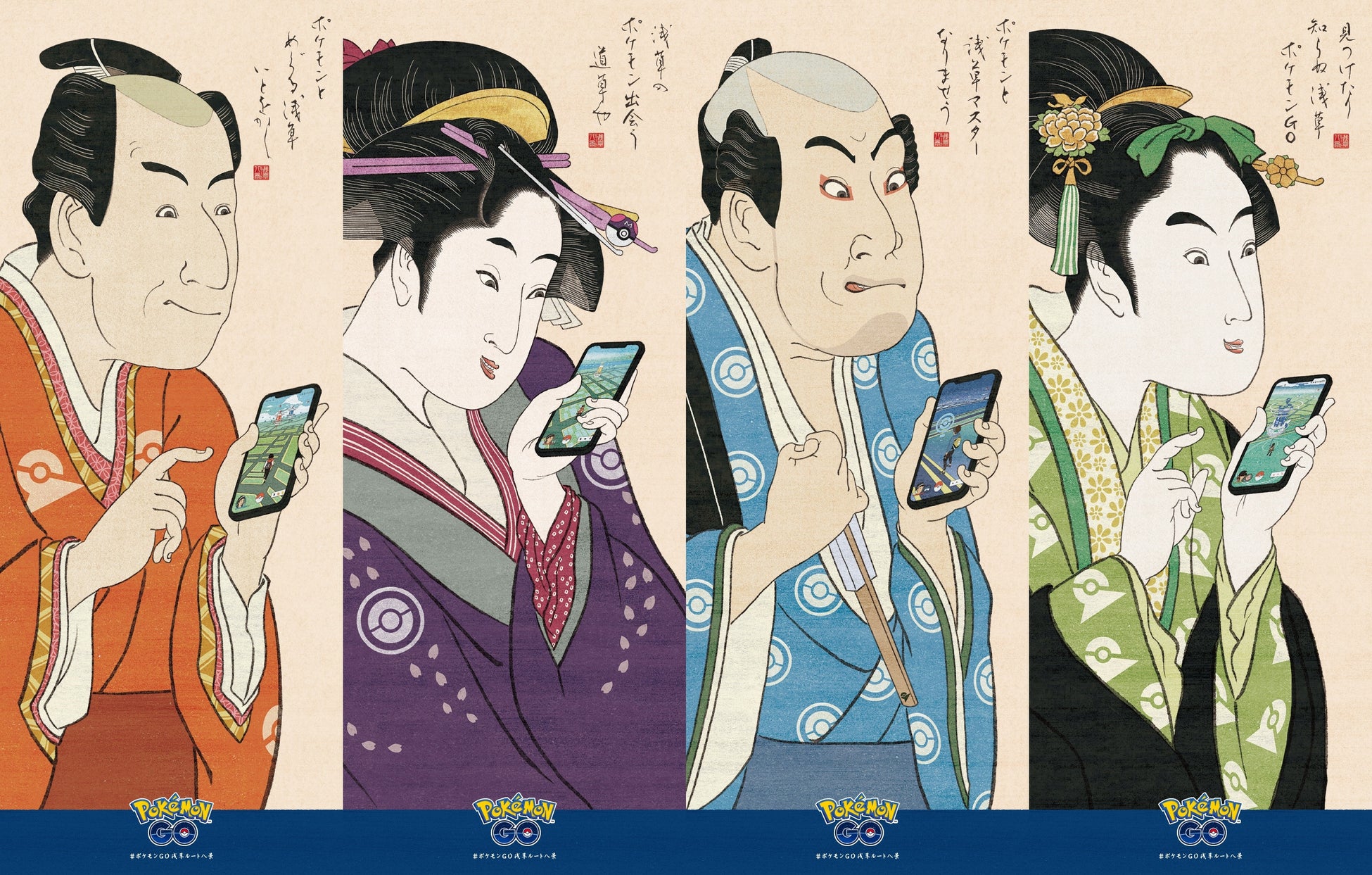 『ポケモン GO』上で浅草に登場する8つの「公式ルート」を示す浮世絵風ののぼりが登場し、メインエリアのストリートをジャック。また『ポケモン GO』上でもそれぞれの 「公式ルート」付近のエリアでは、各「ルート」をイメージしたポケモンが登場します。