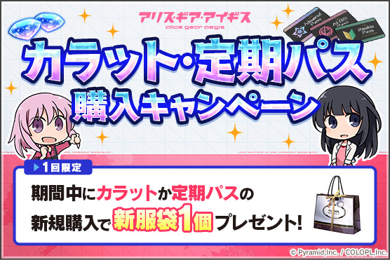 その他、期間中に「カラット」か「定期パス」を新規ご購入いただくことで特典をプレゼントする、「カラット・定期パス購入キャンペーン」も開催している。