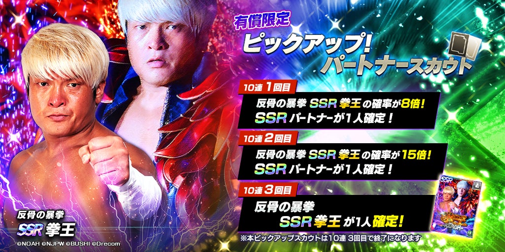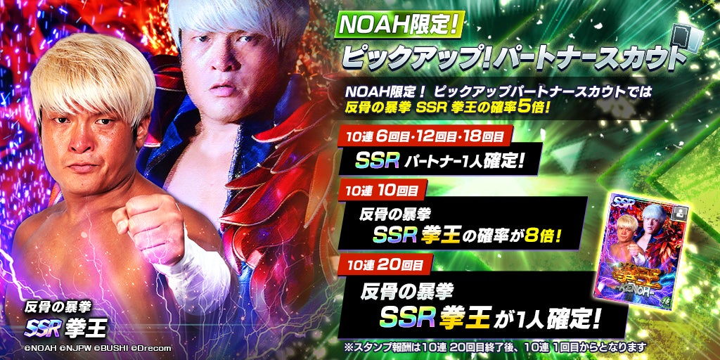 NOAHから、SSR拳王が登場!NOAH限定ピックアップパートナースカウトを開催!