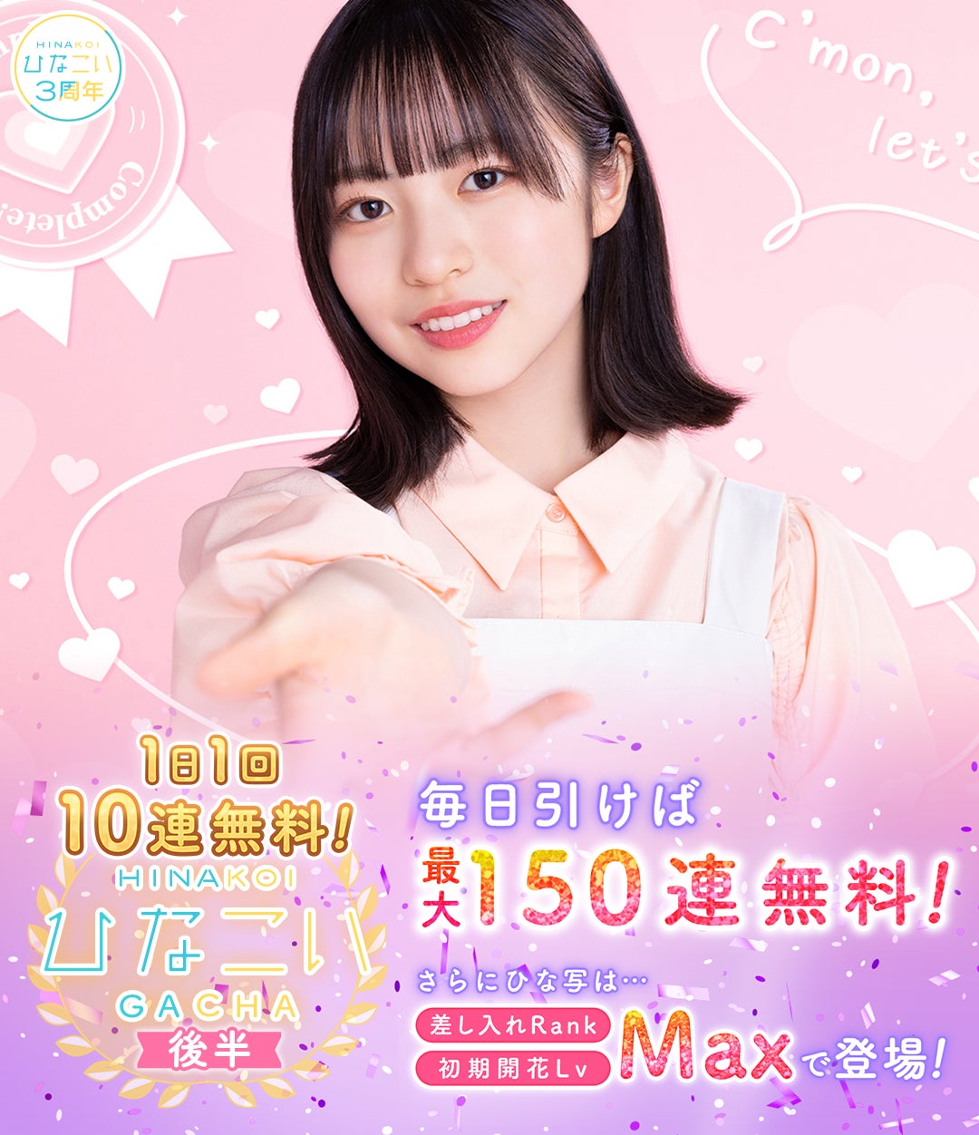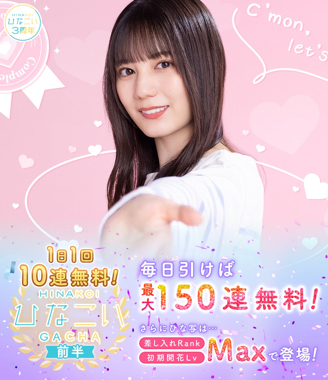 また、いつも遊んでいるユーザーへ、感謝の気持ちを込めて、3周年ならではの超豪華なログインボーナスや、特別なガチャを用意。この機会に「ひなこい」アプリをプレイして楽しもう。