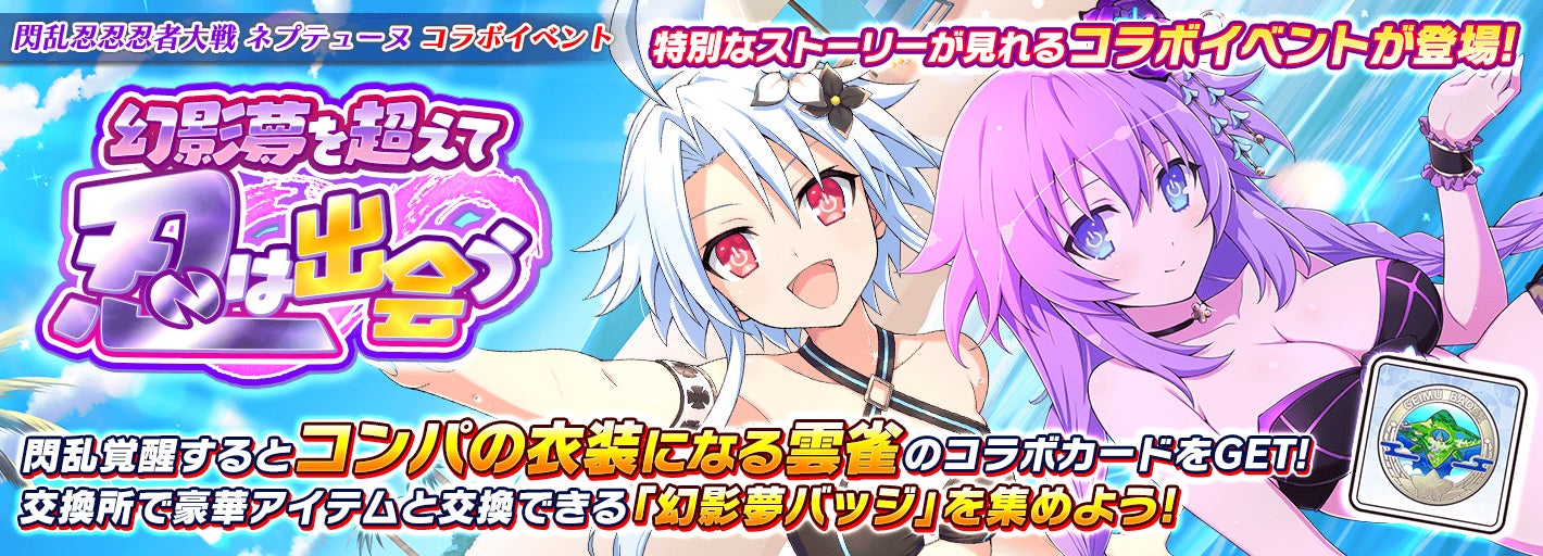 今回のコラボイベントでは、「閃乱忍忍忍者大戦ネプテューヌ」とコラボした特別なシナリオが見られます♪