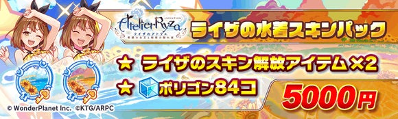「海輝爽眩な錬金術士 ライザ」「夕輝爽眩な錬金術士 ライザ」2種類のスキンの解放アイテムが入ったパック!ポリゴンもお得にGET可能!