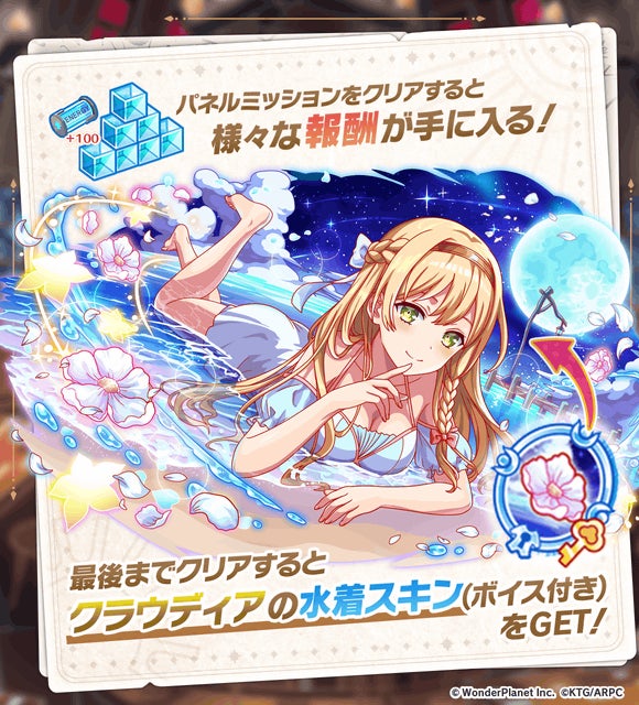 最後まで達成すると「輝音輝心なお嬢様 クラウディア」の水着スキン「海輝月照なお嬢様 クラウディア」を解放できるアイテムをGET可能!