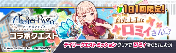 ワンダープラネット<4199>は、『クラッシュフィーバー』において11月24日(金)より、「『クラッシュフィーバー』×アニメ『ライザのアトリエ』コラボ」を開催する。