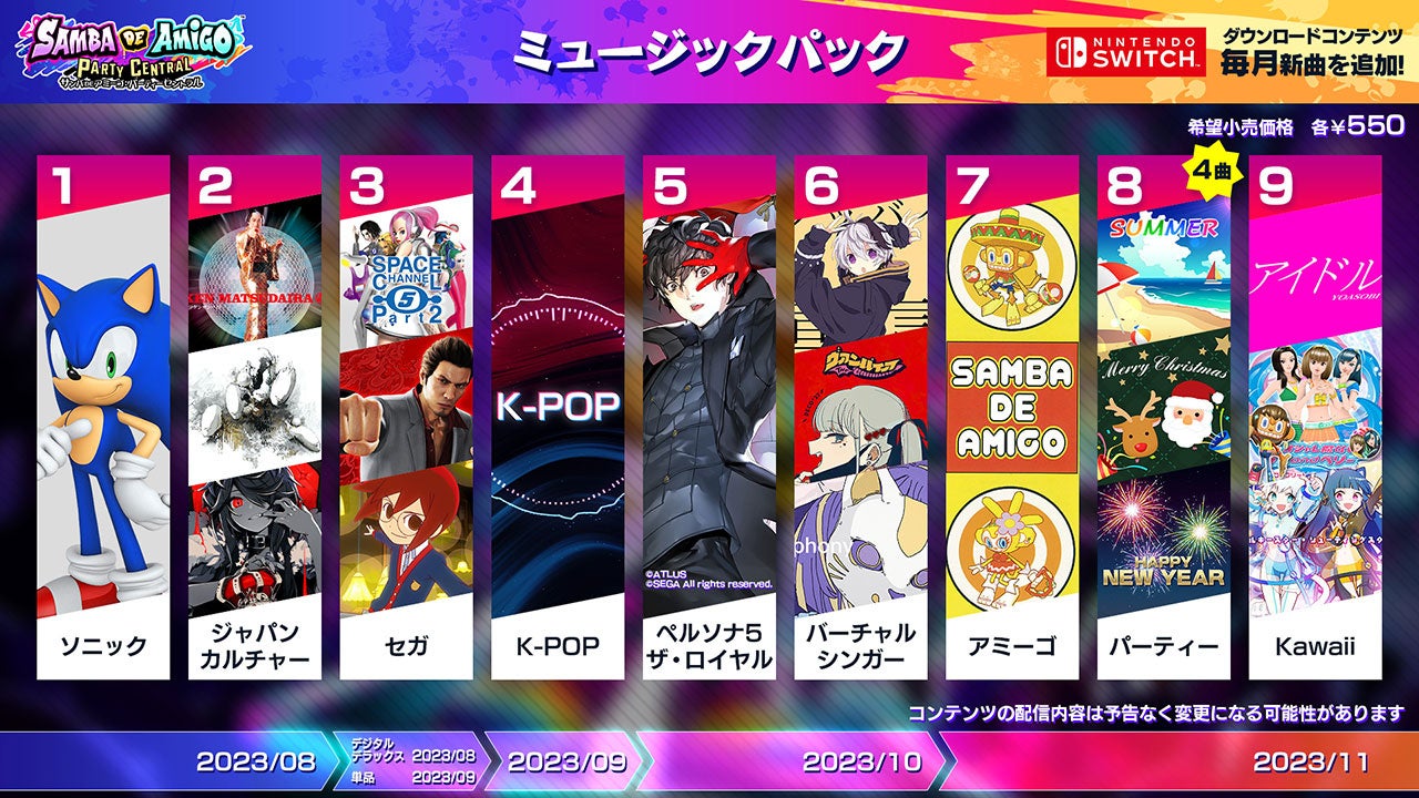 セガは、Nintendo Switch(TM)用ソフト『サンバDEアミーゴ:パーティーセントラル』につきまして、11月30日(木)に新たなダウンロードコンテンツ(DLC)「Kawaii ミュージックパック」を配信することを発表した。また、新たなプレイ動画を公開した。
