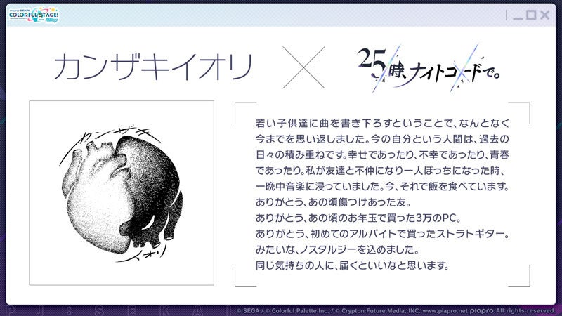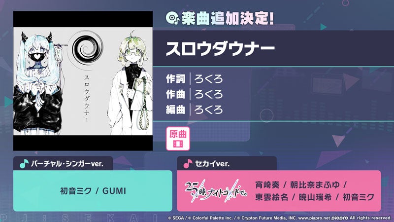Gigaさんには「Vivid BAD SQUAD」のユニットソング、カンザキイオリさんには「25時、ナイトコードで。」の書き下ろし楽曲を提供いただきます。