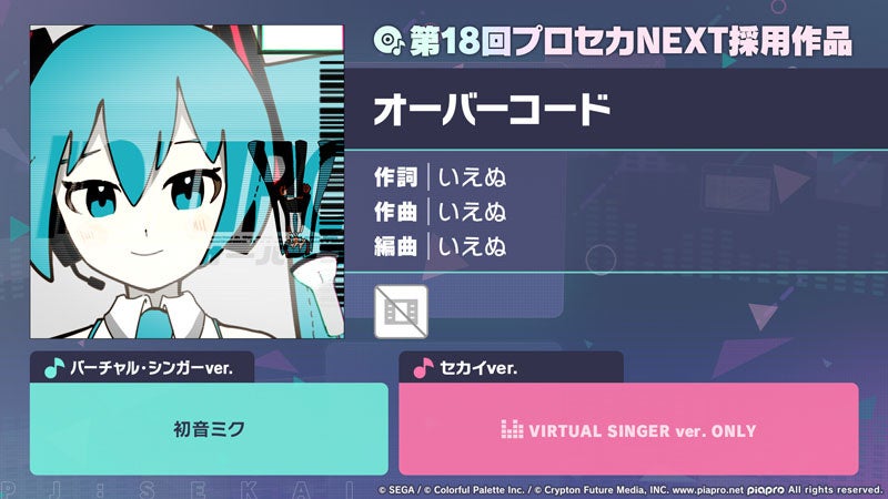 新たなリズムゲーム楽曲として、「オーバーコード」(作詞・作曲:いえぬ)の追加が決定いたしました。本楽曲は、「一緒に作ろう!第18回楽曲コンテストプロセカNEXT」の採用楽曲です。