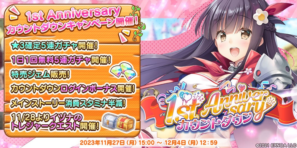 EXNOAは、『救世少女 メシアガール おかわり』にて11月27日(月)より1stAnniversaryカウントダウンキャンペーンを開始した。