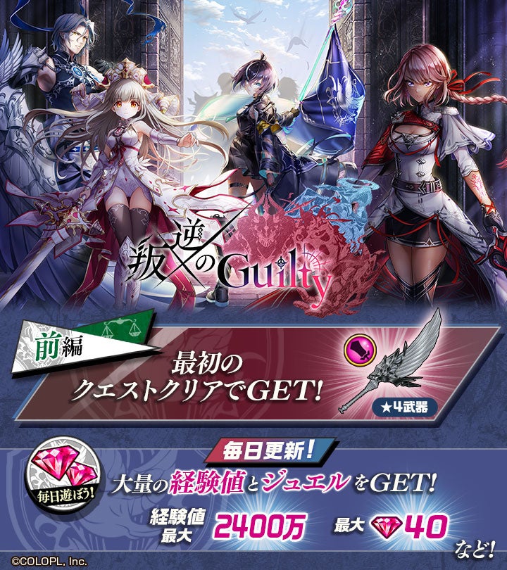 大人気の「叛逆のCOLOR’s」シリーズと「The World of Guilty」シリーズのキャラクターたちがついに交わる最新イベントを開催いたします。イベントをクリアして武器やアイテムを手に入れましょう。
