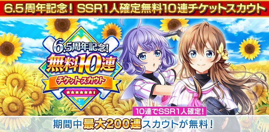 アカツキゲームス、『八月のシンデレラナイン』で「監督ありがとう!6.5周年Half Anniversary」キャンペーンを開催 最大200連スカウトができるチケットをプレゼント