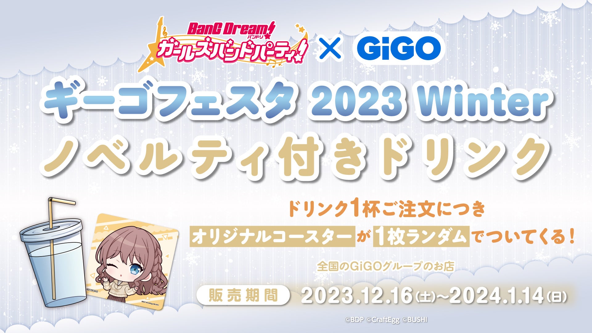 ブシロードクリエイティブは、12月16日(土)より対象のGiGOグループのお店にて『バンドリ! ガールズバンドパーティ! ギーゴフェスタ2023 Winter』の期間限定イベントを開催する。