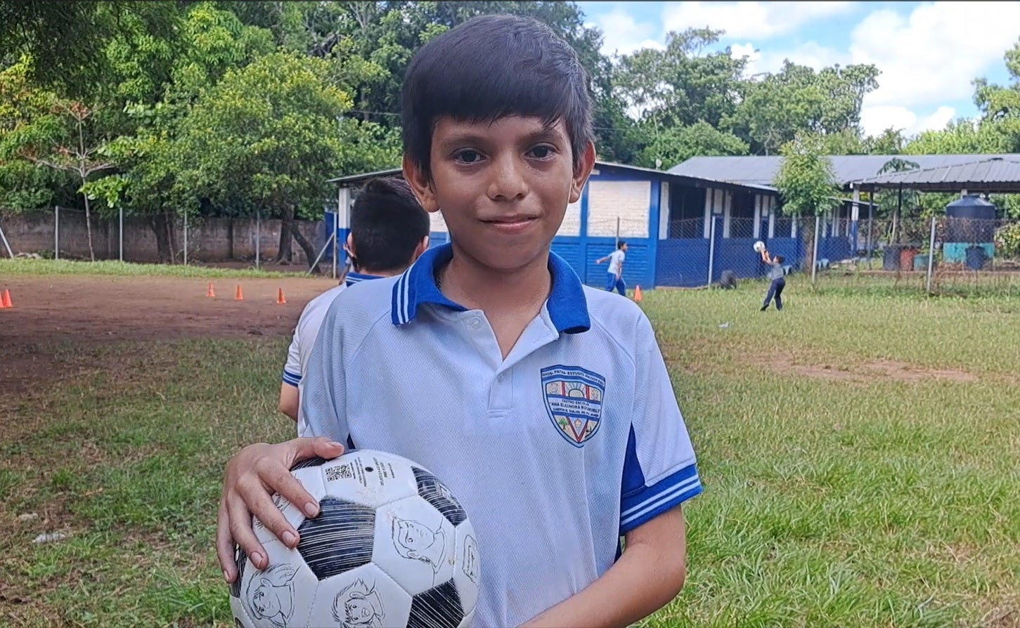 「皆さん、ボールを贈ってくださってありがとうございます。小学校のサッカースクールの仲間とたくさん練習します!」