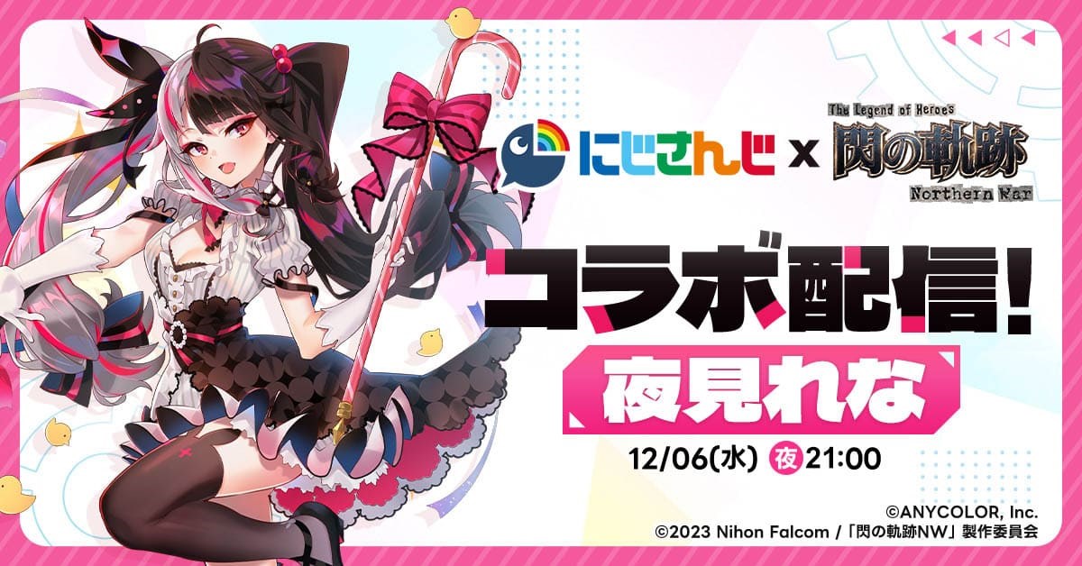 ゲーム『英雄伝説 閃の軌跡:Northern War』の公式X(元Twitter)で、にじさんじライバー「夜見れな」とのコラボ配信を12月6日21時より実施することを発表した。配信の視聴者にはゲームアイテムプレゼントも用意されている。