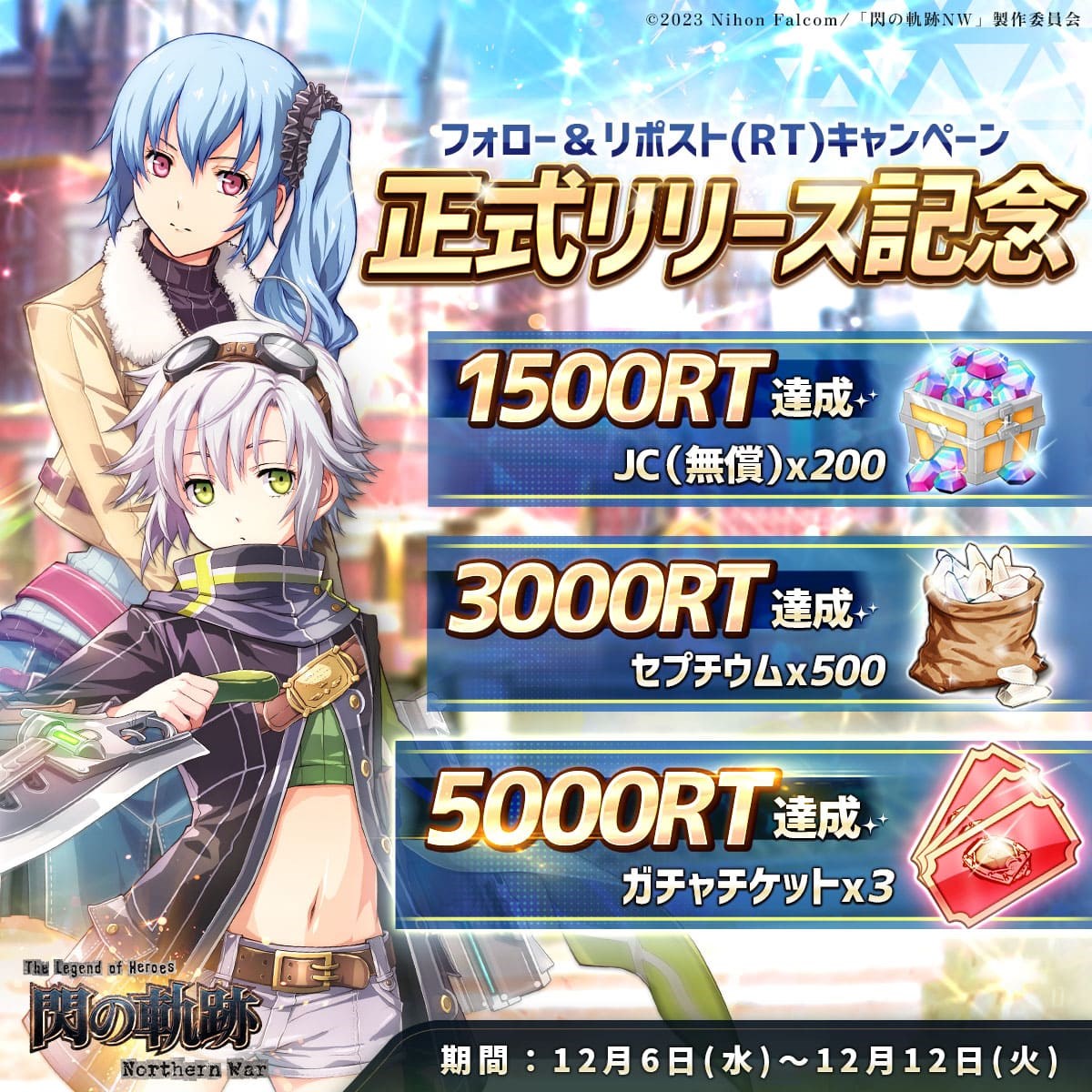 また、現在公式X(元Twitter)では、「JC」「セプチウム」と「ガチャチケット」がもらえるフォロー&RT(リポスト)キャンペーンも開催する。今すぐキャンペーンに参加して、ゲームアイテム報酬を入手しよう!
