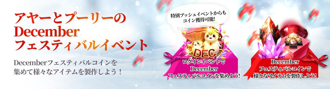 12月のアップデートを記念して、「Decemberフェスティバルコイン」を集めて様々な報酬を獲得できるイベントを開催いたします。