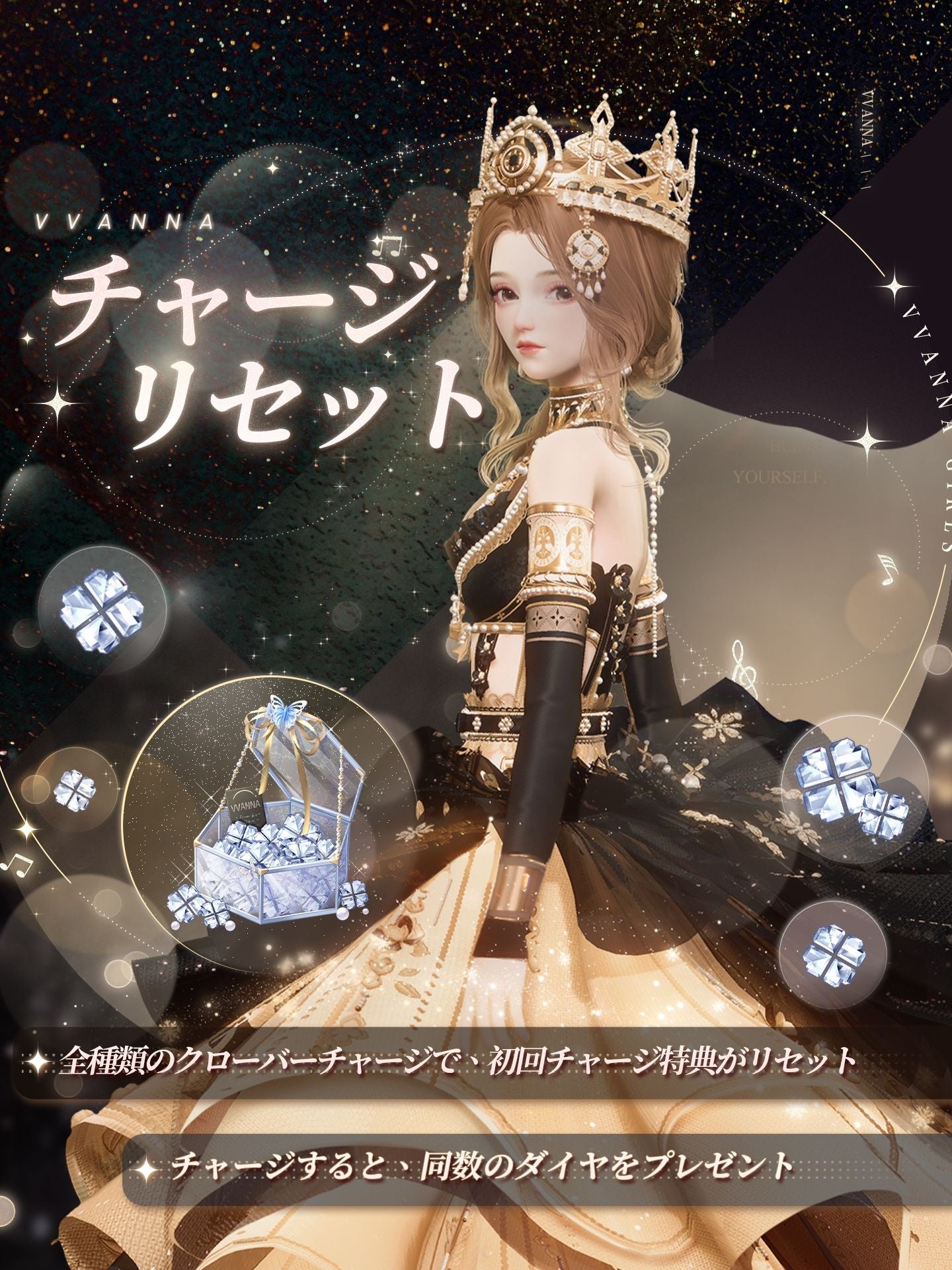 12月7日のバージョン更新後、全種類のクローバーチャージで、初回チャージ特典がリセットされます!任意のクローバー数をチャージすると、同数のダイヤをプレゼント。プレイヤー様は、この超お得な機会をお見逃しなく!