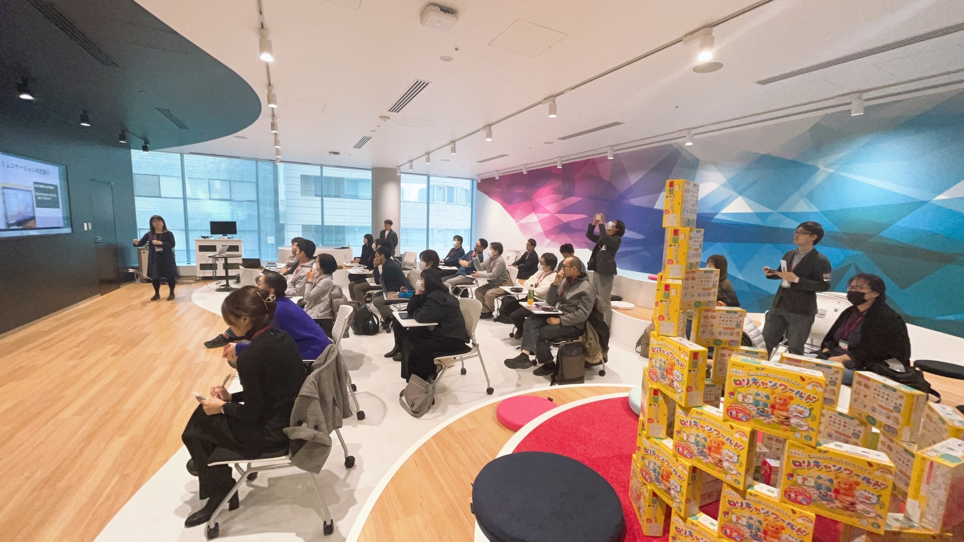 埼玉県立特別支援学校の関口あさか先生、大阪府立特別支援学校の樋井一宏先生、茨城県公立小学校の山口禎恵先生による「特別支援におけるエデュテイメントの活用」をテーマにしたワークショップでは、授業でお菓子を活用する事例などを紹介。