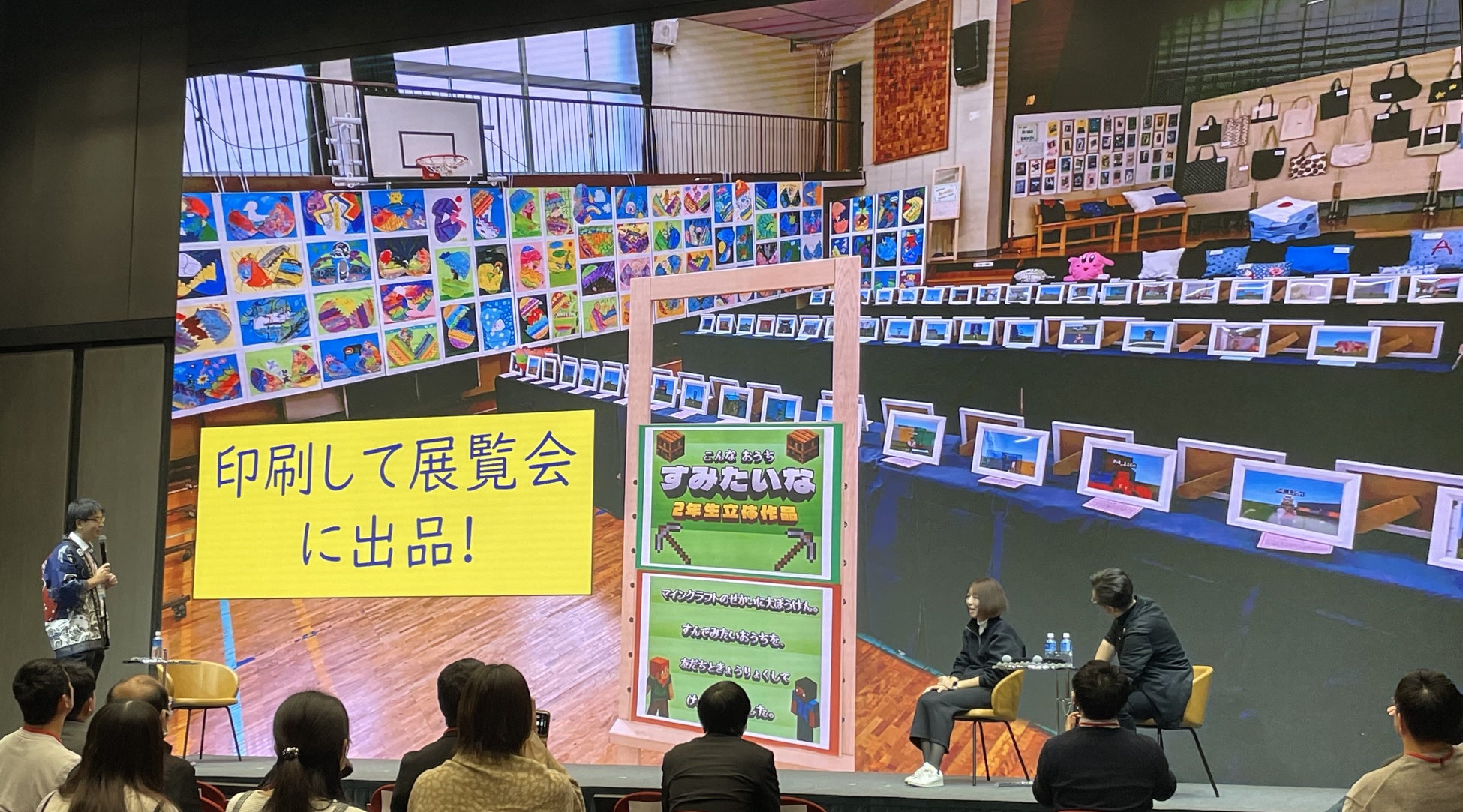 ワークショップ「エデュテイメント、教室でやってみた!」には、プロマインクラフターのタツナミシュウイチさん、東京学芸大学附属小金井小学校の小池翔太先生、茨城県公立小学校の飯山彩也香先生が登壇。『マインクラフト』(Microsoft) のさまざまな活用事例を紹介。