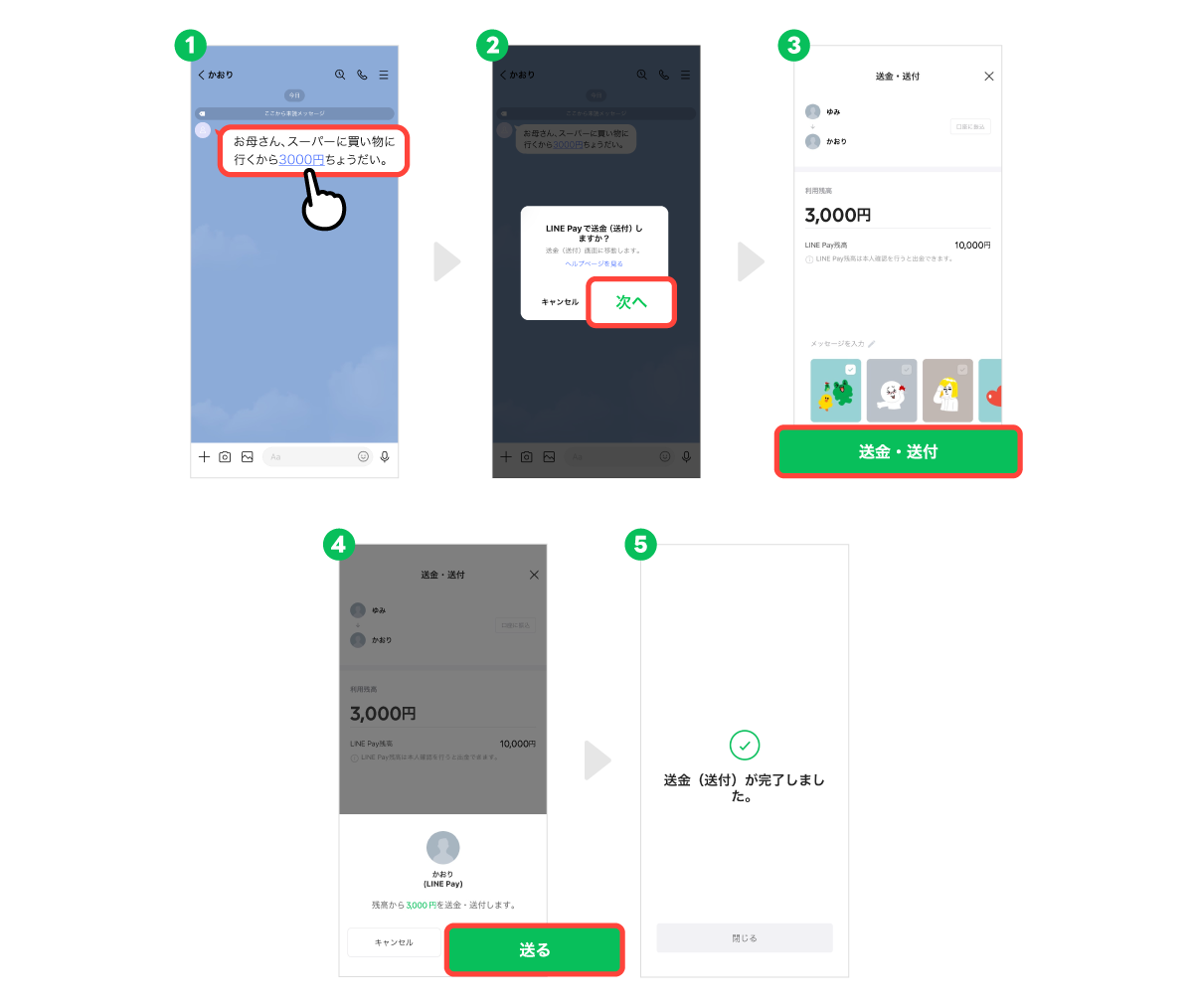 ■「LINE」のメッセージに入力された金額表示からLINE Payの残高を送る方法
